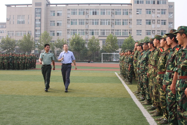 9月20日上午,2013级新生军训汇报表演暨总结表彰大会在我院南北两校区分别召开。院党委副书记王向军,副院长温传富、张兆明、王兴国,纪委书记杨永欣,承训部队军训团团长孙少锋以及有关处室和各系部的负责人出席大会并观看了汇报表演。大会由院纪委书记杨永欣主持。