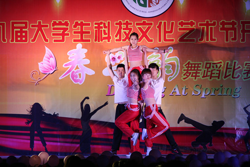 随后,第四届“春之韵”舞蹈大赛拉开了本届大学生科技文化节的序幕。舞蹈比赛分为必选舞和自选舞两部分,必选舞等级之间难度不同,自选舞则种类繁多,有绚丽夺目的爵士舞,也有激情四射的健美操,各参赛队用自己独特的风格演绎着青春与激情,充分展现了我院学子多才多艺以及当代大学生的风采。台上激情飞舞,台下热情鼓掌,现场气氛高潮不断。现代农业技术系的马晓红老师以及大学生艺术团也为大家献上了精彩的演唱。经过激烈的角逐,最终,经济管理系夺得了本次比赛的桂冠,土地资源与房地产管理系与会计系分别获得第二名、第三名。