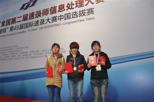 10月15至18日,在沈阳公安司法管理干部学院举办的“亚伟杯”全国第二届速录师信息处理大赛暨“通往根特”第49届国际速录大赛中国选拔赛中,我院学子喜创佳绩,2010级文秘(速录师方向)专业学生高乔乔荣获“文字整理最佳奖”,刘艳、顾笑笑荣获综合“优胜奖”,潘保丽老师荣获“优秀指导教师”奖项。