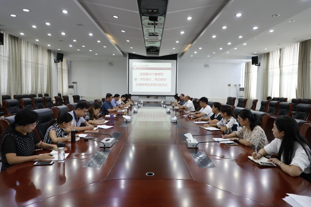 9月6日下午,必赢在北校区和济南校区分别召开庆祝教师节暨“不忘初心、牢记使命”主题教育征求意见座谈会。校党委书记丁希滨、校长王西奎、党委副书记张业赏、副校长张伟出席座谈会,来自各学院的36名教师代表和有关职能处室主要负责同志参加了座谈会。