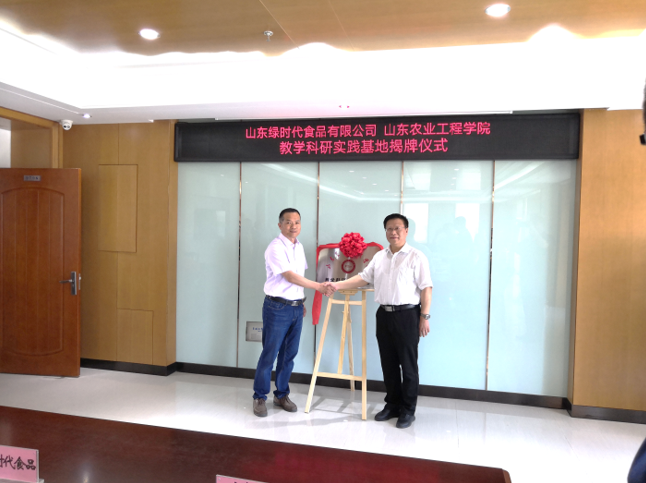 近日,校党委委员、副校长杨振宁,科技处处长董传河、食品学院院长于克学以及相关老师一行4人赴济阳区山东绿时代食品有限公司召开校企合作签约会议。济阳区副区长牟晓丽、济北开发区管委会副主任刘佩珍、区农业农村局局长焦玉印、区科技局局长董峰、绿时代食品有限公司董事长谢慧诚等出席签约仪式。会议在济北开发区总部经济中心召开。