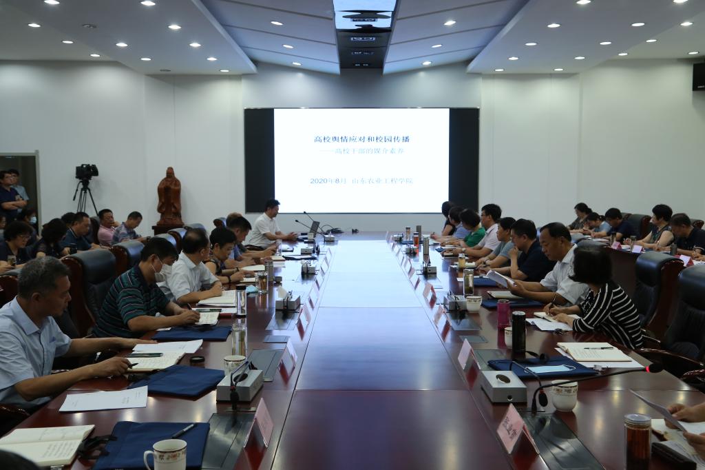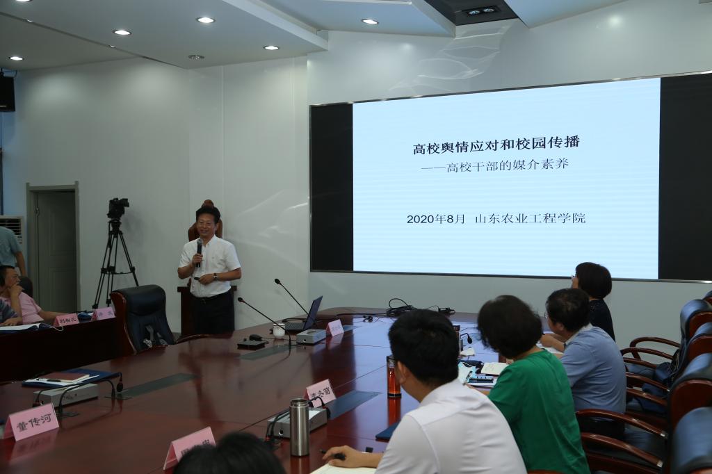 为进一步加强和改进新形势下学校宣传思想工作,提升领导干部媒介素养及网络舆情应对能力,8月13日上午,必赢邀请山东省教育厅(省委教育工委)办公室调研员、厅新闻中心主任宋全政研究员在济南校区为各级干部职工作了题为《高校舆情应对和校园传播——高校干部的媒介素养》的专题报告。校领导丁希滨、王西奎、张兆明、杨振宁、张伟、穆若英出席报告会,报告会由党委副书记张业赏主持。学校中层干部,各部门、各单位核心网评员,辅导员参加培训。