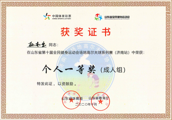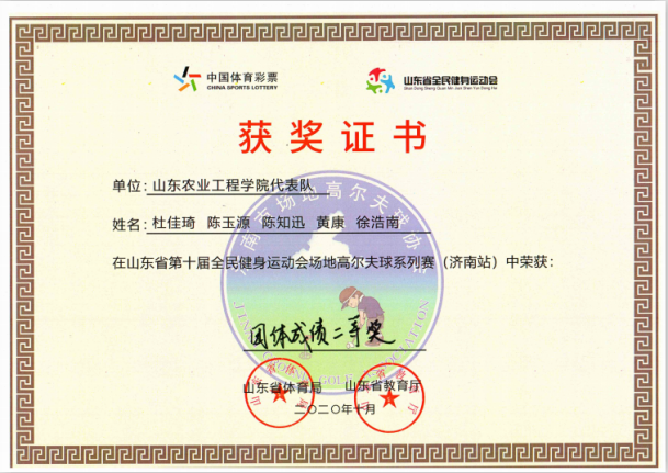 2020年10月18日,山东省第十届全民健身运动会场地高尔夫球系列赛(济南站)在济南市章丘区实验小学成功举办。必赢场地高尔夫球队斩获团体成绩二等奖。