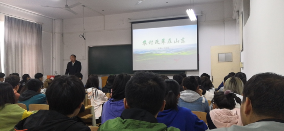2020年10月28日上午,在济北校区2号教学楼108教室,校党委书记丁希滨为2020级农林经济管理专业公费农科生讲授第一堂特色专业课——《农村改革在山东》。据悉,学校党委书记亲自给大一本科生讲授一门自建特色课,在学校教学历史上还是第一次。