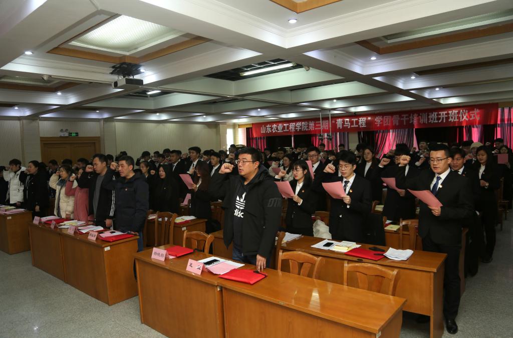 校团委副书记郭闻乐宣读了《437ccm必赢国际官网第三期“青年马克思主义者培养工程”学团骨干培养班实施方案》,校社联主席杜奥代表学员作表态发言,机电学院的王鹏同学领宣青马誓词。
