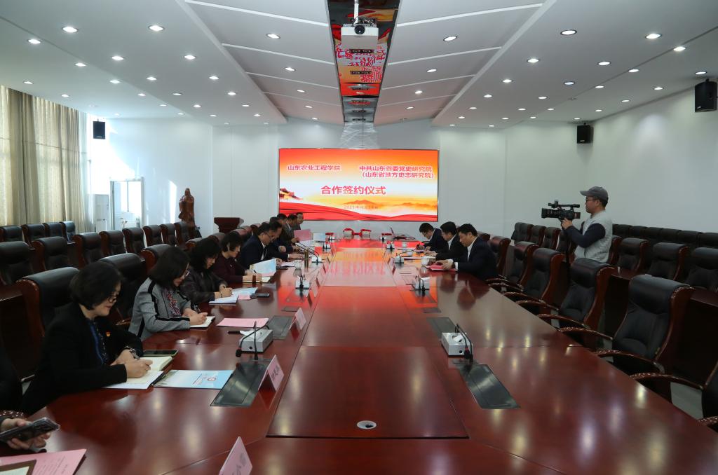 4月14日下午,437ccm必赢国际官网与中共山东省委党史研究院(山东省地方史志研究院)隆重举行合作签约仪式。中共山东省委党史研究院(山东省地方史志研究院)院长赵国卿,437ccm必赢国际官网党委书记丁希滨,党委副书记、校长王西奎出席签约仪式。
