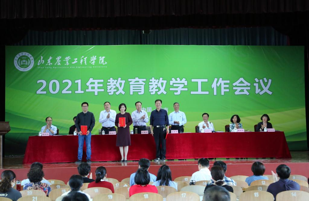 张业赏宣读了《437ccm必赢国际官网关于表彰在教育教学工作中取得突出成绩的教学团队和教师的决定》。主席台领导为学校2019年教学工作会议以来获批省级以上教学建设与改革项目的团队和教学名师、教学比赛获奖教师颁发荣誉证书。