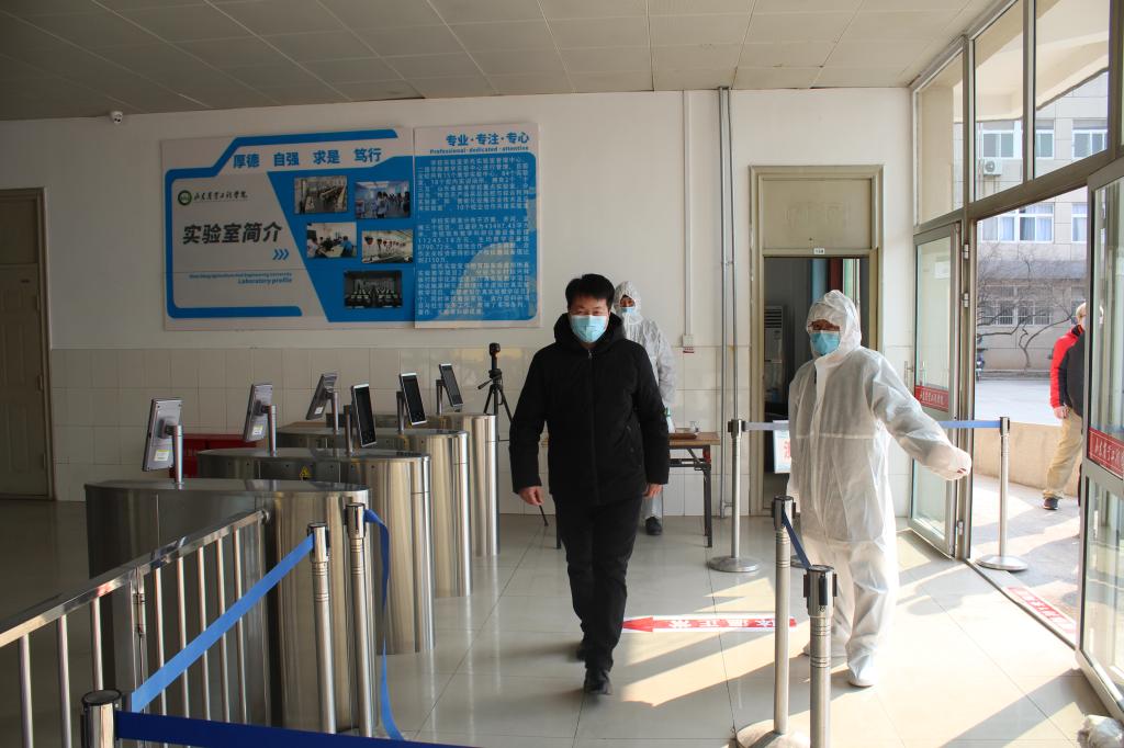 本次演练严格按照《437ccm必赢国际官网齐河校区2022年春季学期疫情防控演练方案》等相关文件要求,先后在入校门口、图书馆、实验楼、教学楼、食堂、学生公寓等重点区域开展演练。模拟学生入校、上课、食堂就餐、住宿、图书馆学习、实验活动等测温、查验身份、体温异常处置以及消毒等流程的全要素、全流程演练。参演人员模拟发现体温异常立即启动应急处置程序,实战演练上报信息、稳定学生情绪、引导留观点、将发热学生送至定点医疗机构发热门诊进一步检查等应急处置措施。