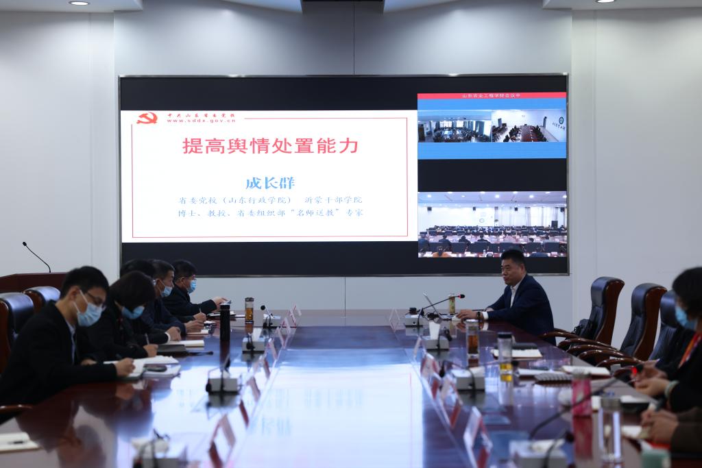 11月17日上午,必赢在济南校区办公楼第四会议室举办舆情应对处置能力专题培训会。山东省委党校(山东行政学院)、沂蒙干部学院教研部副主任、教授成长群应邀作辅导报告。全体校领导,处级以上干部,各部门、各单位舆情信息员参加培训。党委委员、党委宣传部部长牛化振主持会议。