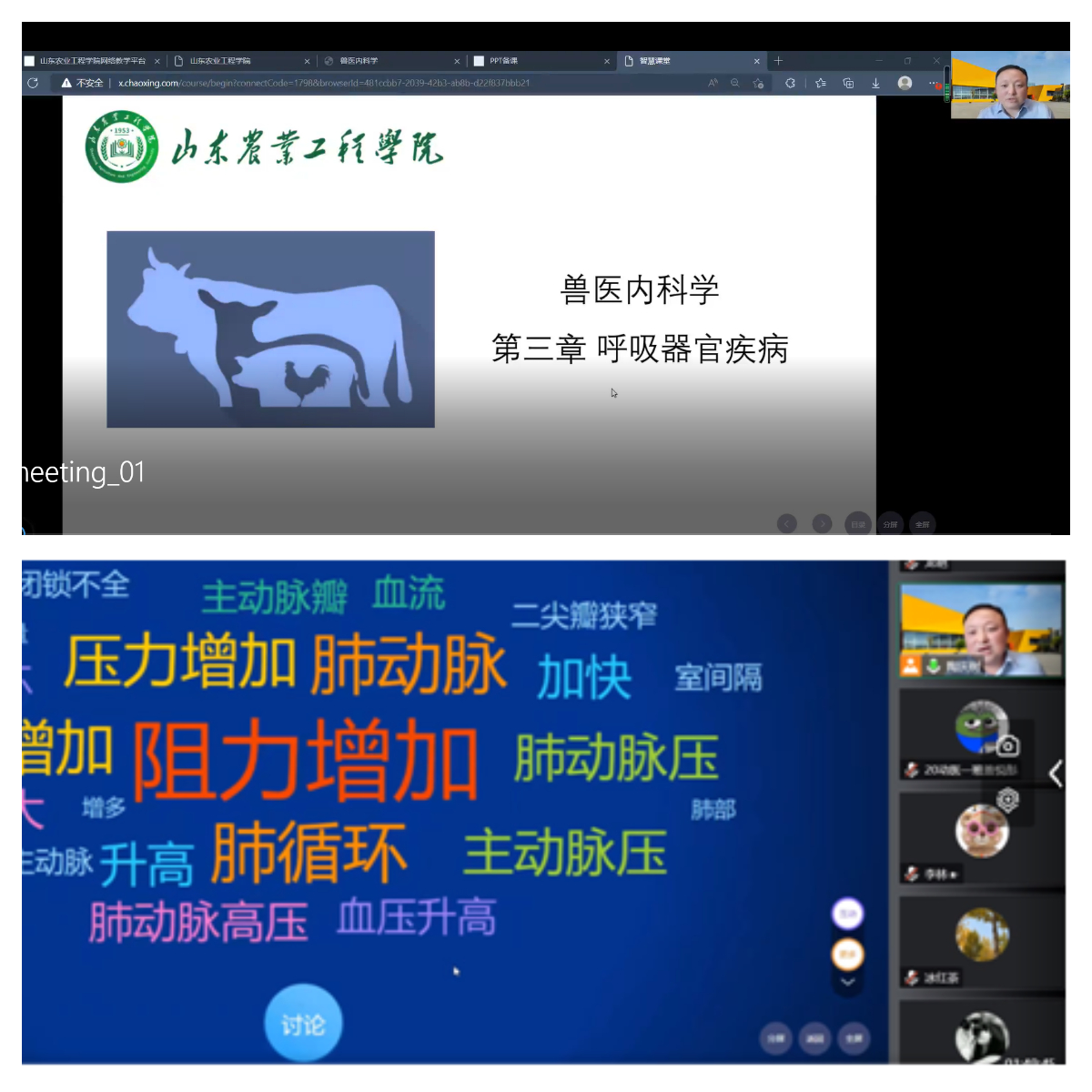 陶老师讲授的是《兽医内科学》课程中呼吸器官疾病的相关内容。他精心设计线上教学,采用启发式、讨论式、讲授法等多种教学方法,通过丰富的图片、音频、视频等教学媒体,熟练使用智慧树、超星泛雅、腾讯会议等多种教学平台,运用平台功能积极与学生互动,课堂气氛活跃,充分体现了以学生为中心的教学理念。
