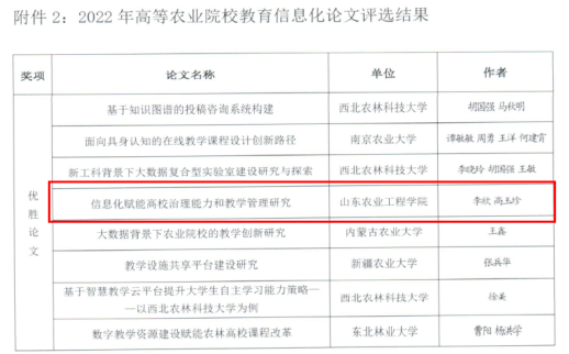 近日,中国教育技术协会高等农业院校分会公布了2022 年高等农业院校先进集体、先进个人和信息化成果系列优秀评选结果。必赢荣获教育信息化建设先进集体称号,网络信息中心主任李欣荣获教育信息化建设先进工作者,报送的《信息化赋能高校治理能力和教学管理研究》被评为优胜论文。