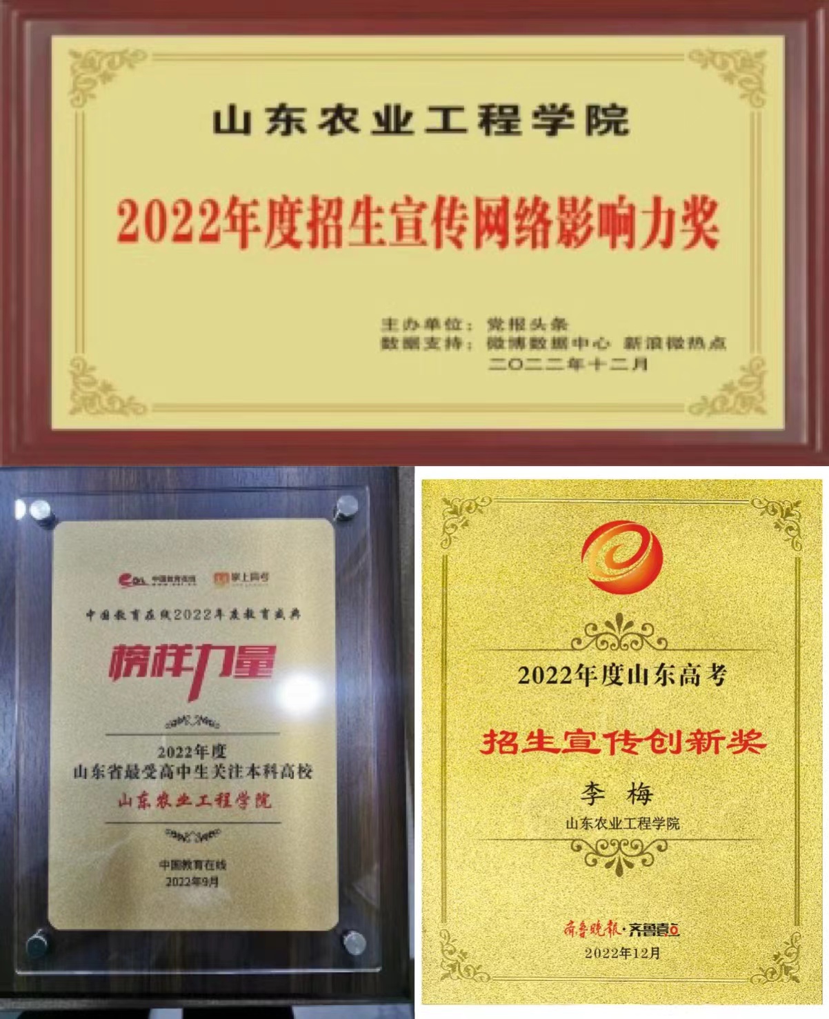近日,齐鲁晚报·齐鲁壹点、新浪、中国教育在线等媒体发布2022年度招生工作荣誉榜单,必赢招生工作从众多高校中脱颖而出,分别荣获齐鲁晚报·齐鲁壹点“2022年度招生宣传最具影响力高校”“2022年度招生宣传创新服务高校”、新浪微热点“2022年度招生宣传网络影响力奖”、中国教育在线2022年度教育盛典榜样力量 “山东省最受高中生关注本科高校”等多项荣誉。学校教务处招生办公室李梅被授予个人“招生宣传创新奖”。