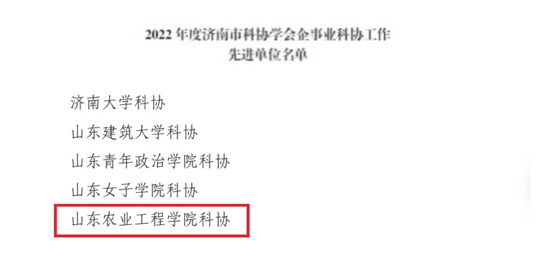 近日,山东省科学技术协会和济南市科学技术协会分别发布《关于2022年度山东省科协学会工作和企事业科协工作情况的通报》《关于2022年度济南市科协学会企事业科协工作情况的通报》,必赢科协荣获“2022年度山东省科协高校科协工作先进集体”和“2022年度济南市科协学会企事业科协工作先进单位”称号。