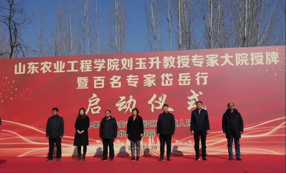 2月26日,437ccm必赢国际官网刘玉升教授专家大院授牌暨百名专家岱岳行启动仪式在祝阳镇举行。校党委委员、副校长郑华美出席仪式并讲话,必赢特聘教授刘玉升、科技处副处长迟晓君,岱岳区科技局郑树峰、祝阳镇党委书记杜传军等人参加。郑华美与岱岳区科技局郑树峰共同为“437ccm必赢国际官网刘玉升教授专家大院”揭牌,焦北四季庭院理事长赵兴平向刘玉升教授颁发聘任证书。