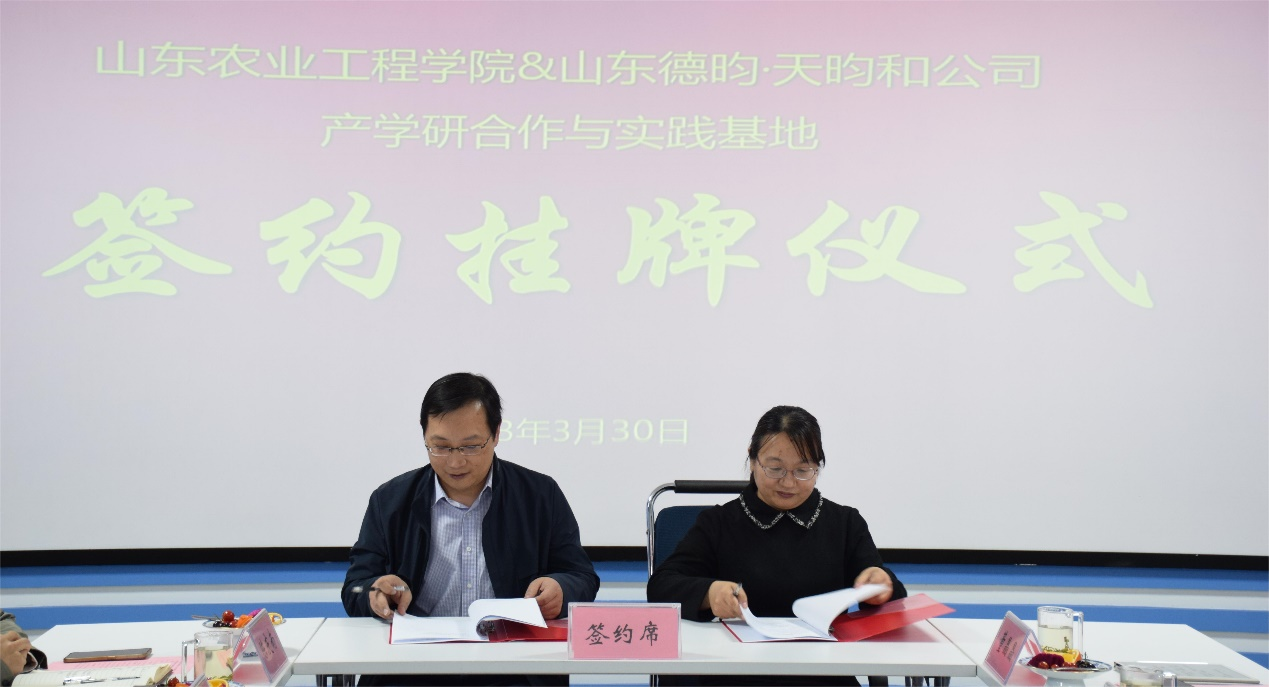 仪式上,党委委员、副校长郑华美和山东德昀总经理张纯涛共同为实践教学基地揭牌。