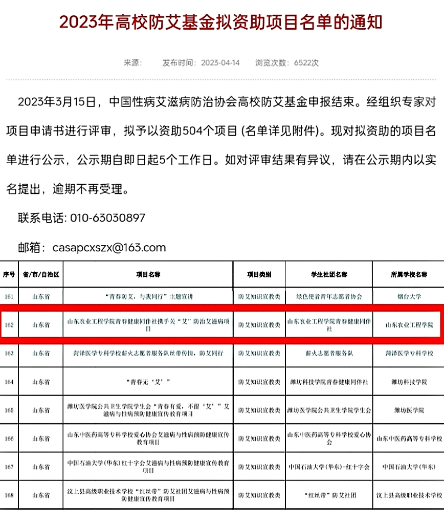 近日,中国性病艾滋病防治协会公布了2023年高校防艾基金申请项目入选名单,全国共有504个项目获得立项资助,必赢学生社团青春健康同伴社申报的携手关“艾”防治艾滋病项目,在防艾知识宣教类团队项目中脱颖而出,成功获批。