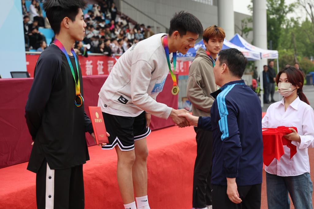 校领导张鸿波、李进京对各代表队和运动员们取得的优异成绩表示祝贺,向筹备本届运动会付出辛勤劳动的老师和同学们表示感谢,并指出:体育运动不仅可以使同学们增强体质、提高技能,还可以增进集体荣誉感、锤炼意志品质,培养胜不骄败不馁、顽强拼搏的精神,丰富同学们的精神世界。下一步,学校将更加重视体育工作,持续加大投入力度,完善体育设施,深化体育教学改革,为广大师生营造更好的运动和健身环境,也希望老师和同学们牢固树立“健康第一”“终身体育”的理念,继续发扬奋发向上、团结协作、永不服输的体育精神,积极养成体育运动、健康生活的良好习惯,始终保持青春活力、阳光心态,以强健的体魄、饱满的精神、昂扬的斗志投入到工作、学习和生活中来,为建设高水平应用型大学注入强大动力!