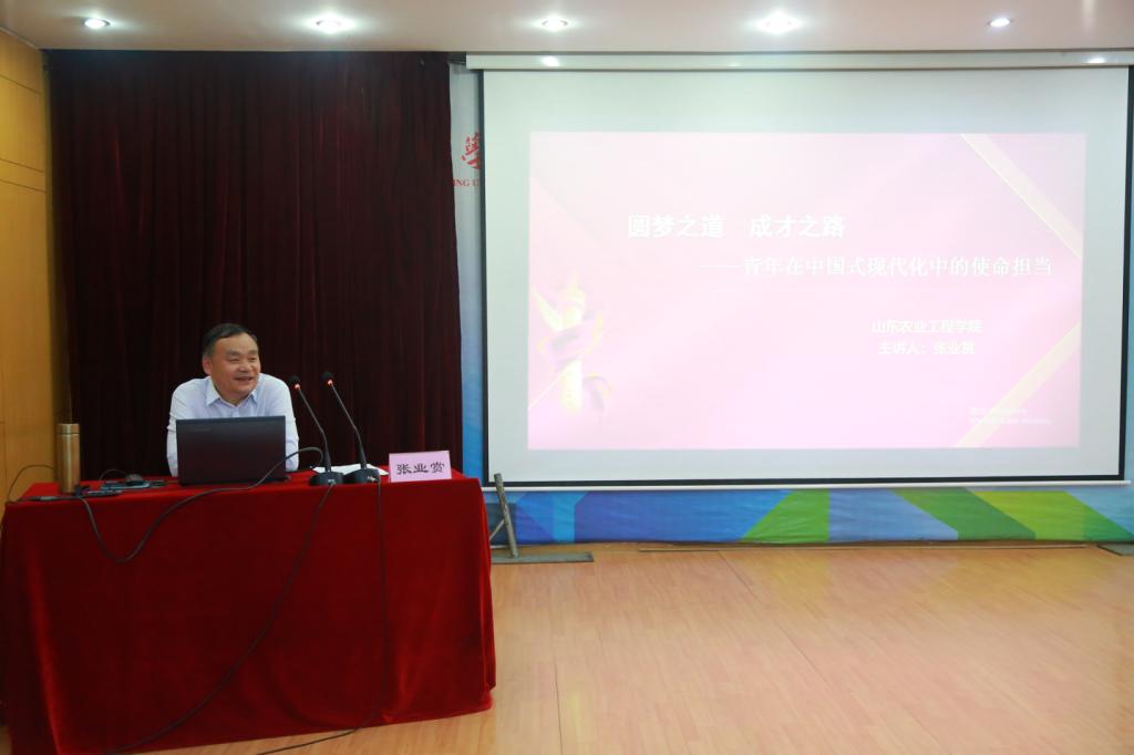 揭牌仪式结束后,张业赏以“圆梦之道,成才之路——青年在中国式现代化中的使命担当”为题开启明德讲堂首场报告。他从习近平总书记关于中国式现代化的论述、世界三次现代化浪潮及其特征、中国现代化的艰辛探索、农业农村现代化和人的现代化、青年在中国式现代化中的使命担当五个方面诠释了中国式现代化的内涵、中国式现代化的艰难历程和中国式现代化的伟大成就,并对推进中国式现代化过程中青年的使命担当进行了阐述。他勉励大家要坚定信念、自强自信、胸怀天下、锐意创新,在为祖国、为人民的奉献中焕发出绚丽光彩。广大师生纷纷表示,本次报告主题鲜明、内容丰富,既有历史维度、又有现实维度,既有思想高度、又有理论深度,极具针对性、指导性,深受教育,受益匪浅。