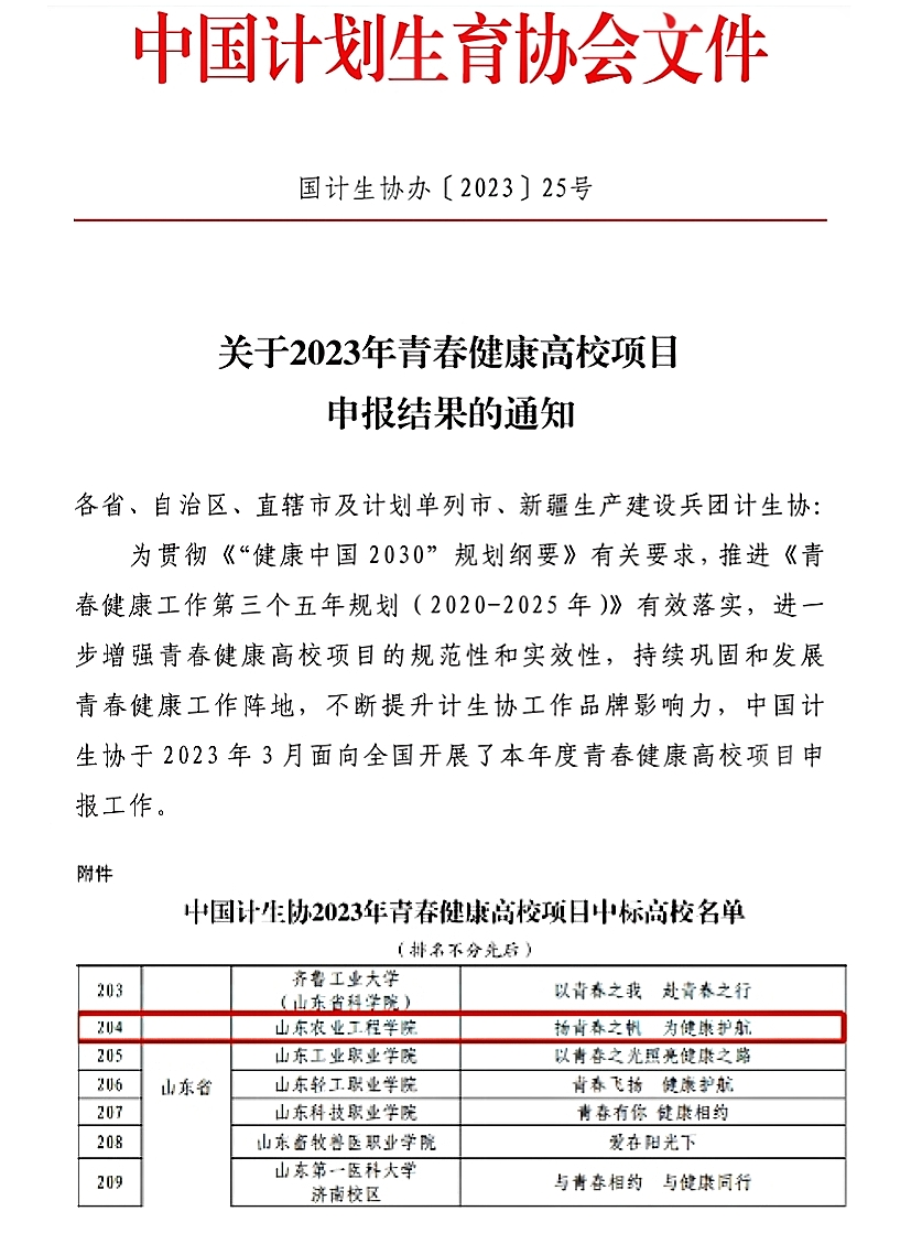 近日,中国计划生育协会公布了《关于2023年青春健康高校项目申报结果的通知》,必赢团委与青春健康同伴社申报的“扬青春之帆,为健康护航”项目从全国500多所高校中脱颖而出,再次成功中标2023年度青春健康高校项目,创下连续4年中标该项目的佳绩。
