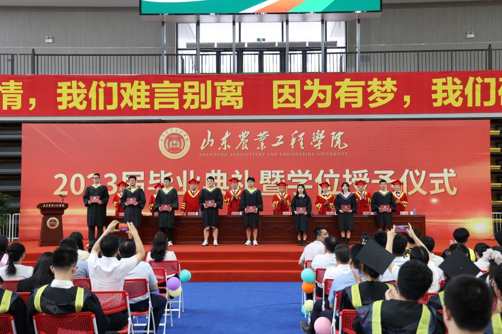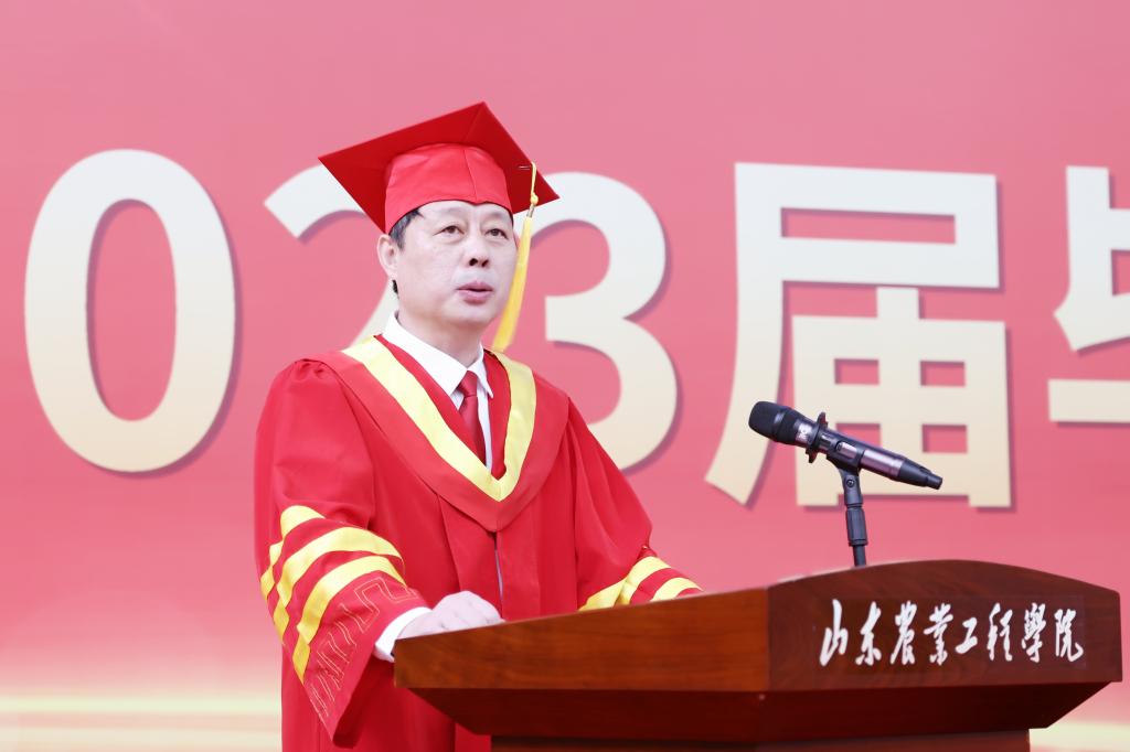 跃入人海,星河灿烂;鹏程万里,未来可期。6月27日、6月28日上午,学校2023届毕业典礼暨学位授予仪式在济南、齐河、淄博三校区隆重举行。校领导张鸿波、李进京、张业赏、黄晓彦、杨玖庆、郑华美、周吉鹏、牛化振、韩娟出席典礼,各二级学院(部)和有关职能部门负责人、教师代表、毕业生辅导员、2023届毕业生参加典礼。典礼由党委委员、副校长杨玖庆主持。