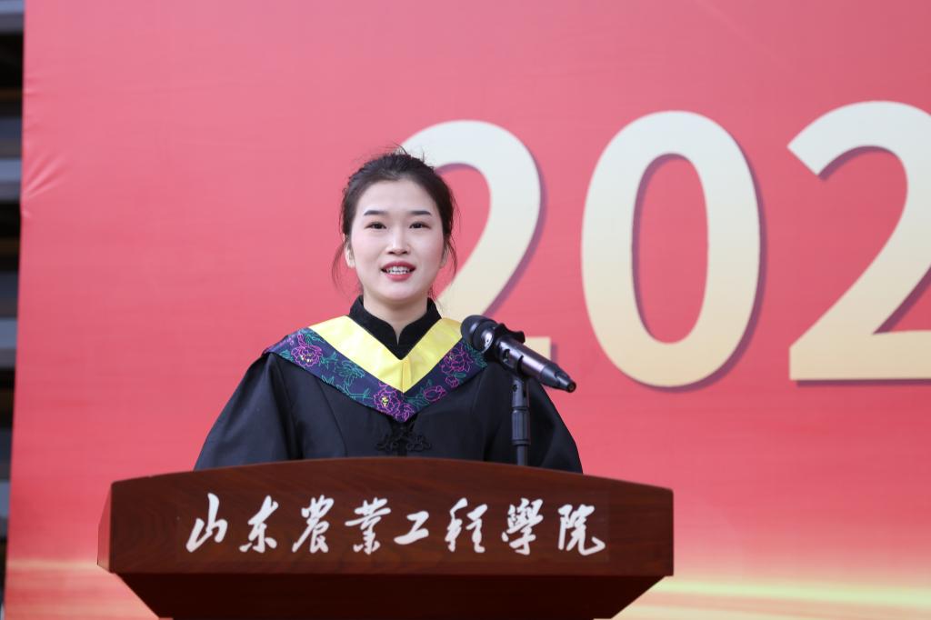 经济管理学院李贵梅、林业工程学院陈春利、食品科学与工程学院祝梦柳作为教师代表,衷心祝贺2023届毕业生顺利完成学业,祝愿全体毕业生乘风破浪、扬帆起航,在新时代新征程上书写绚丽多彩的人生华章。人文学院贾仁昊、农业科技学院吴玉卿、信息科学与工程学院李歆怡代表2023届毕业生发言,他们深情回顾了在校期间的学习生活和难忘瞬间,表达了对母校最真挚的祝福。“感谢师恩,爱在心间”,毕业生代表为教师代表献上鲜花,感谢老师的无私培育和辛勤付出。