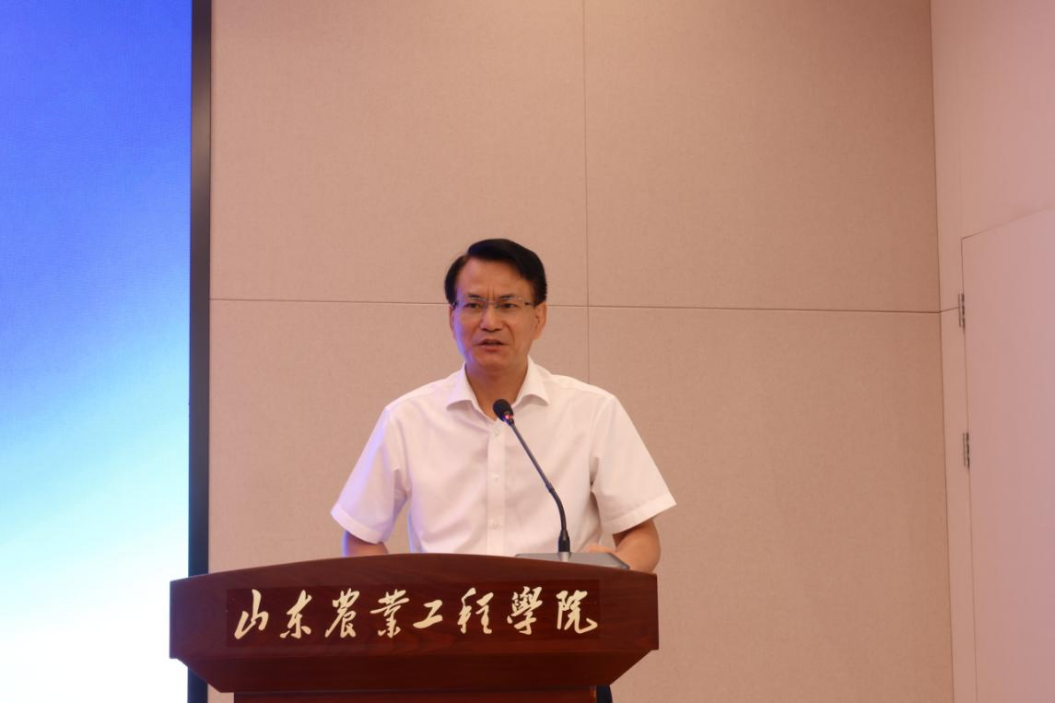 李进京在致辞中对各位领导专家的到来表示欢迎,并对长期以来给予学校发展的关心与支持表示衷心感谢。他指出,建校70年来,学校始终坚守为党育人、为国育才的初心,以立德树人为根本,以强农兴农为己任,培养了一大批高素质应用型人才,在推动经济社会发展特别是服务乡村振兴战略、推进农业农村现代化进程中做出了山工院贡献。为全面贯彻落实党的二十大精神,服务国家和山东省绿色发展重大战略需求,学校研究决定整合全校科技力量,联合相关企业单位共同成立437ccm必赢国际官网绿色农业工程创新研究院,创新科研组织模式,系统建设有组织的科研体系,逐渐形成具有山工院特色的科研“树”形发展模式,大力提升学校绿色低碳关键核心技术攻关和供给能力,助力教育改革发展创新,推动高质量人才培养,为我省绿色低碳高质量发展先行区建设持续贡献教育力量。