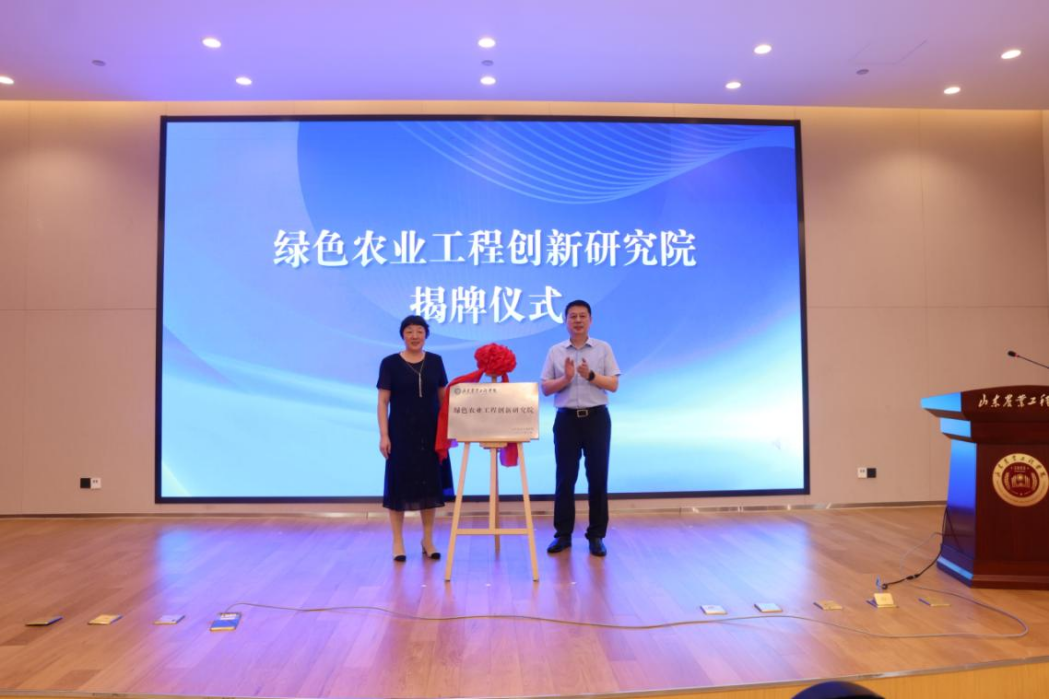 山东省农业科学院党委委员、副院长刘开昌,山东省农业技术推广中心副主任任万明,437ccm必赢国际官网绿色农业工程创新研究院院长郑华美,滨州市京阳生物肥业有限公司总经理赵保忠,山东生态家园环保股份有限公司董事长闫茂鲁,山东祥辰科技集团有限公司总经理王圣楠共同开启437ccm必赢国际官网绿色农业工程创新研究院成立启动仪式按钮。张鸿波宣布437ccm必赢国际官网绿色农业工程创新研究院成立,并同郑华美为437ccm必赢国际官网绿色农业工程创新研究院揭牌。