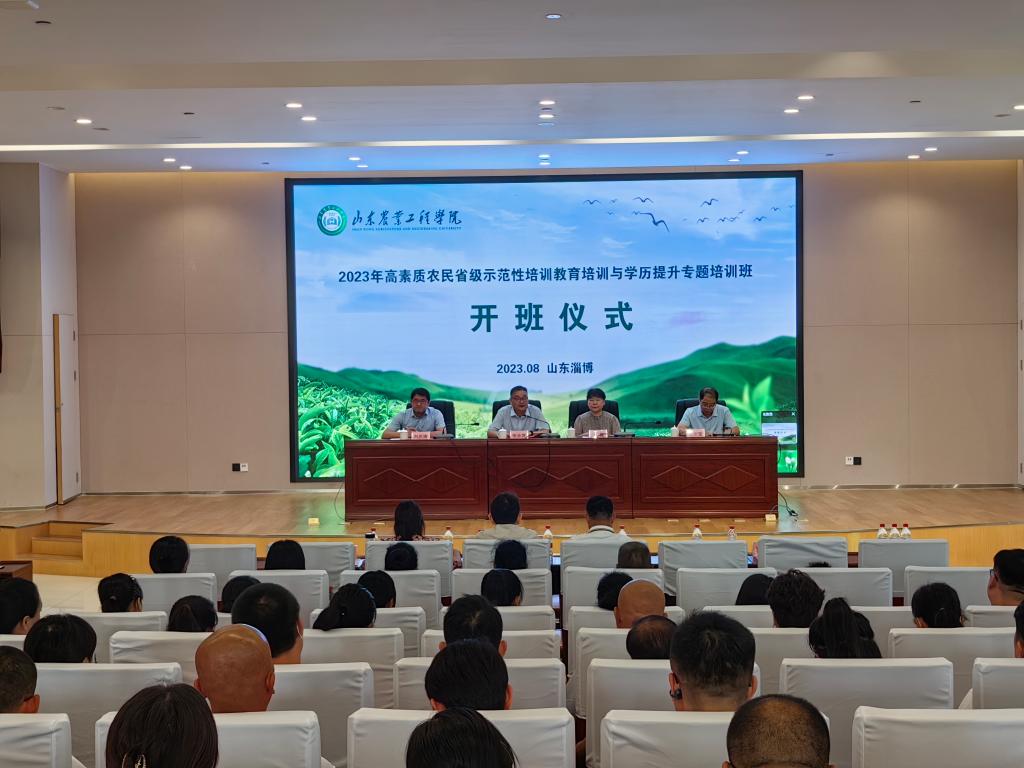 8月25日上午,2023年山东省高素质农民省级示范性培训教育培训与学历提升专题培训班开班仪式在必赢淄博校区顺利举行。校党委副书记张业赏,继续教育学院院长刘庆涛,山东省农业广播电视学校教育科科长王霞出席开班仪式。来自日照莒县、烟台蓬莱市2县(市、区)的100名农民学员参加开班仪式。开班仪式由干部进修学院院长刘文宝主持。