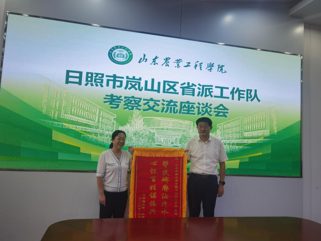 碑廓镇党委书记周文民介绍了当地的历史文化、资源禀赋、发展特色、产业布局等情况,他对学校选派的工作队队员和学校给予碑廓镇的帮助帮扶表示衷心的感谢,他表示期盼与学校继续深度合作。周文民向秦旭教授赠送了锦旗。随后,双方围绕镇村发展规划、人才引进和乡村振兴等方面工作进行了深入交流。