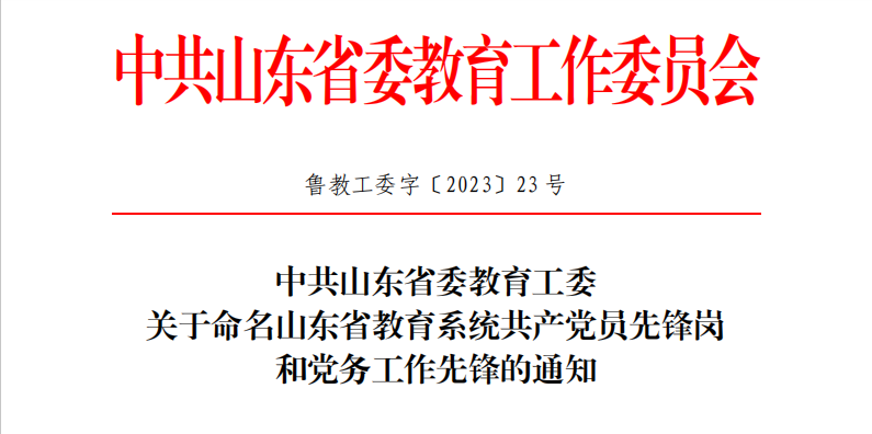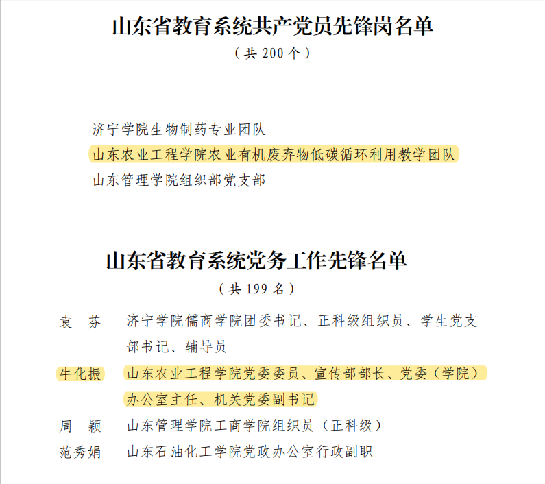 近日,中共山东省委教育工委印发了《关于命名山东省教育系统共产党员先锋岗和党务工作先锋的通知》,必赢农业有机废弃物低碳循环利用教学团队获得“山东省教育系统共产党员先锋岗”称号,牛化振同志获得“山东省教育系统党务工作先锋”称号。