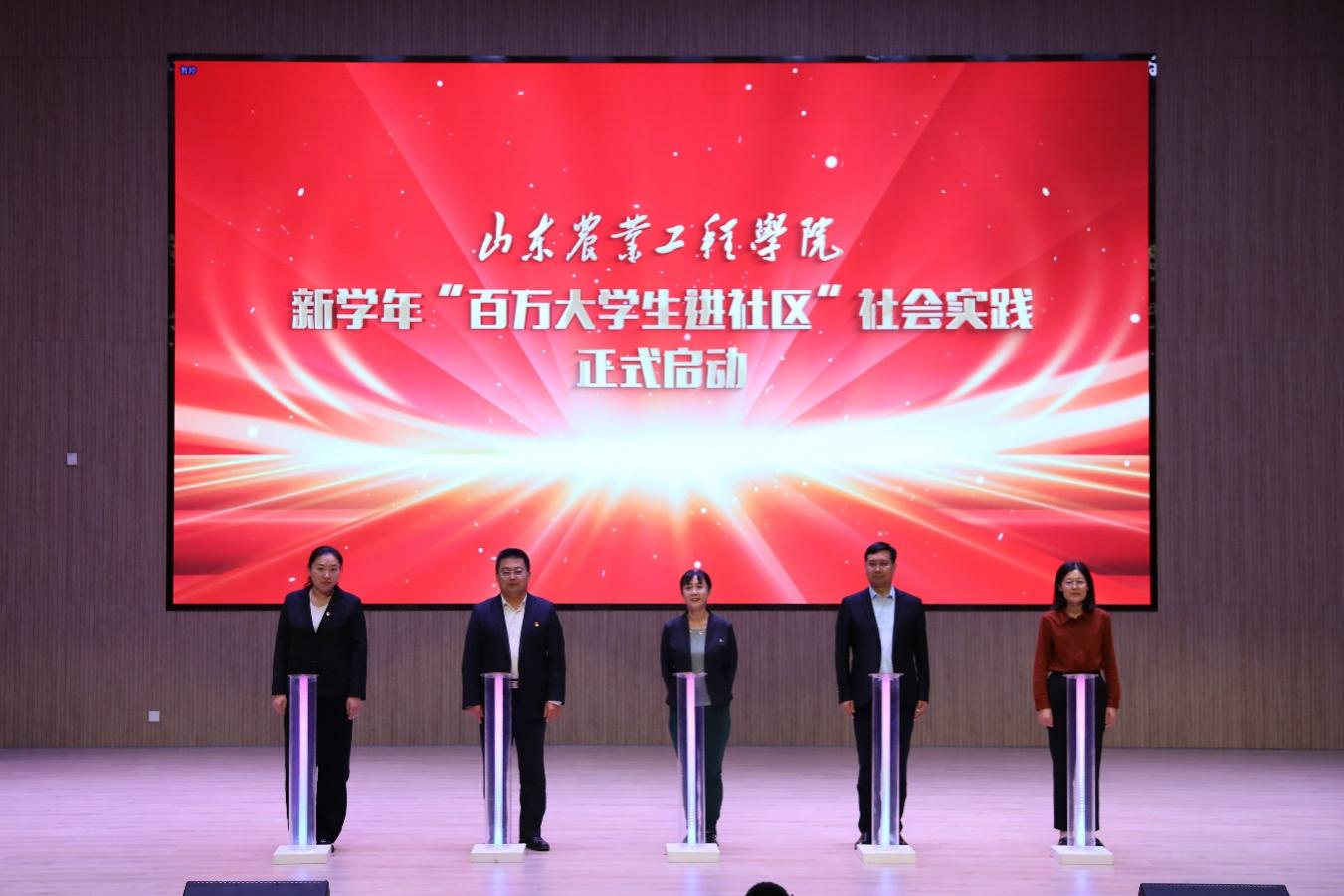 随后,在全场师生的齐声倒计时中,校领导与分别来自三校区的二级学院院长、党总支、团总支书记代表及马克思主义学院主要负责同志共同按下了启动按钮,宣布必赢新学年“百万大学生进社区”社会实践正式启动。