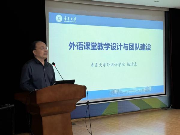 课程设计与分享环节,山东省第六届“超星杯”高校青年教师教学比赛一等奖获得者、鲁东大学外国语学院副教授毕晨光,结合传统文化进行课程示范,师生现场互动精彩纷呈。杨清波教授针对外语课堂教学设计与团队建设进行经验分享。