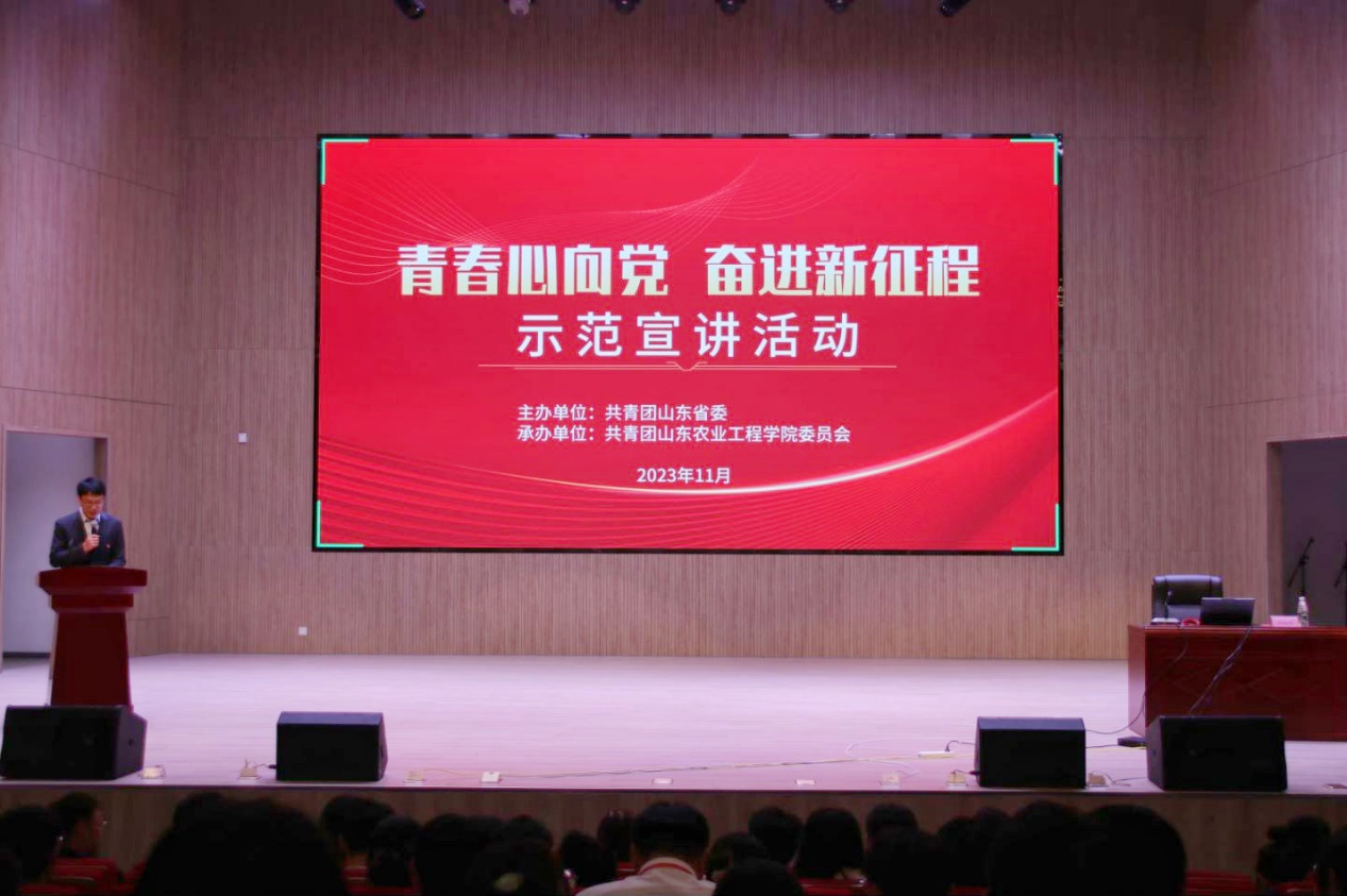 为深入学习宣传贯彻习近平总书记同团中央新一届领导班子集体谈话的重要讲话精神,全面落实团十九大各项部署,扎实推进团员和青年主题教育,切实增强学校共青团思想引领实效,11月9日下午,由共青团山东省委主办,校团委承办的“青春心向党 奋进新征程”示范宣讲活动在淄博校区大学生活动中心报告厅举办。学校第六期青马工程“领航班”学员和团学骨干近500人聆听了宣讲。
