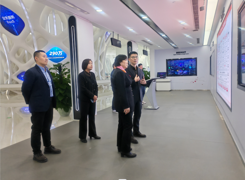 新道科技股份有限公司副总裁宋健等企业领导对郑华美一行的到来表示热烈欢迎。在企方领导的陪同下,郑华美一行参观了用友数智企业体验馆。该馆是中国第一家综合型、融合化、生态式的数智企业体验中心,建筑面积10000余平方米,设置了数智化在各个行业的真实应用场景,全面直观地为大家展示现代化企业数字生产、智能财务、金融科技、云服务等核心业务。