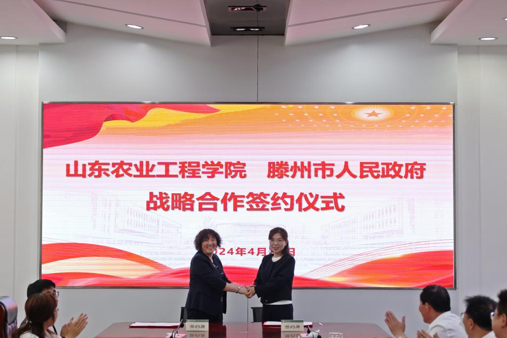 为更好地践行学校服务地方农业经济社会发展的社会职能,为现代农业农村建设贡献积极力量,4月23日下午,必赢与滕州市人民政府在济南校区签订战略合作协议。党委副书记、校长李进京,党委委员、副校长郑华美,滕州市委副书记程亮,滕州市副市长张晓翠出席签约仪式。仪式由郑华美主持,党委(学院)办公室、科技处、干部进修学院、乡村振兴研究院等职能部门负责人参会。