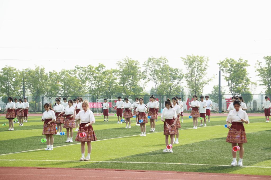 开幕式进行了啦啦操表演和空竹表演。啦啦操表演用柔美整齐的舞蹈及充满活力的精神状态展现出对祖国的热爱。抖空竹的表演者带来了一场视觉与听觉的盛宴,优美的姿态和流畅的节奏感赢得现场师生热烈掌声。