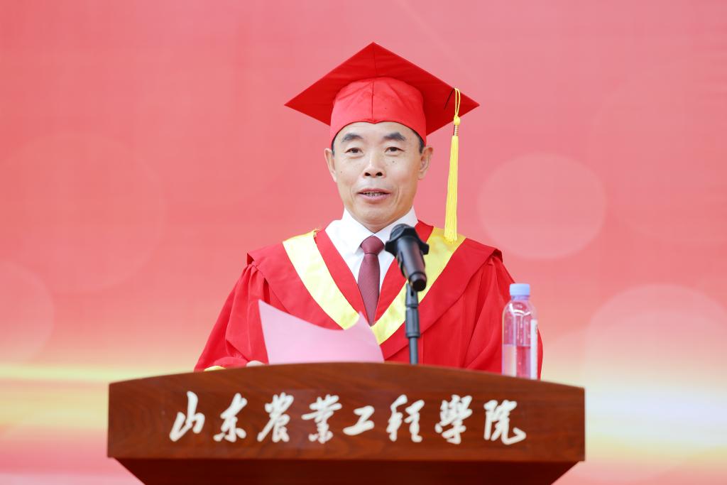 李进京向圆满完成学业、开启人生崭新篇章的毕业生送上真诚的祝福,为心怀祖国、情系基层、勇于挑战、矢志创新的山农工学子点赞。他深情寄语毕业生,一是坚定理想信念,这是照亮前行之路的精神灯塔。要始终牢记“强国建设、民族复兴”的使命,志存高远、脚踏实地,坚守初心、严守规矩,保持对未来的信心,勇于追求和实现自己的梦想。二是坚持终身学习,这是推动自我成长的恒久动力。要永远保持对学习的渴望,与学习终身为伴,勤于学习、敏于求知,自强不息、追求卓越,练就过硬本领,掌握真才实学,汇聚智慧力量,书写精彩的人生答卷。三是锤炼创新能力,这是战胜困难挑战的思维火炬。要善于将理论与实践相结合,勇于创新创造,敢于超越自我,不断学习新知识、掌握新技能,在变化中发现机遇,在挑战中寻求突破,努力成为新时代的领跑者。四是锻造担当精神,这是勇敢面对未来的力量源泉。要将担当精神内化于心、外化于行,把个人的发展与国家的进步、社会的发展紧密相连,在中国式现代化新征程上挺膺担当、奋勇前行,在火热实践中书写无悔青春。