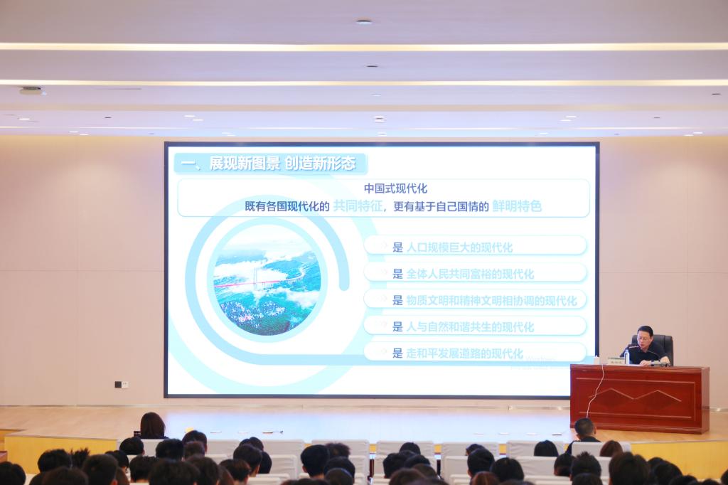 张鸿波从展现新图景、创造新形态,拥抱新机遇、无畏新挑战,锚定新目标、铸就新伟业三个方面,深刻解读了中国式现代化的中国特色,深入分析了实现中国式现代化的国际国内形势与存在的主要问题,并从加快实现高水平科技自立自强、统筹推进城乡区域协调发展、全面推进美丽中国建设、推进高水平对外开放、扎实推进共同富裕等方面,就如何实现中国式现代化作了详细解答。