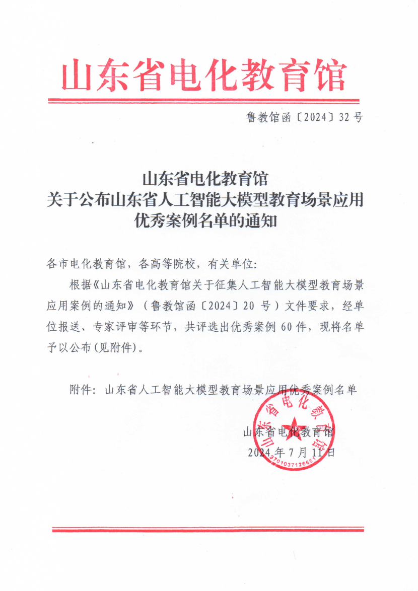 近日,山东省电化教育馆发布了《关于公布山东省人工智能大模型教育场景应用优秀案例名单的通知》(鲁教馆函〔2024〕32号),必赢机械电子工程学院申报的《AI赋能嵌入式课程教学改革案例》(赵志桓、姜明明、廖希杰)在本次评选中获评优秀案例。