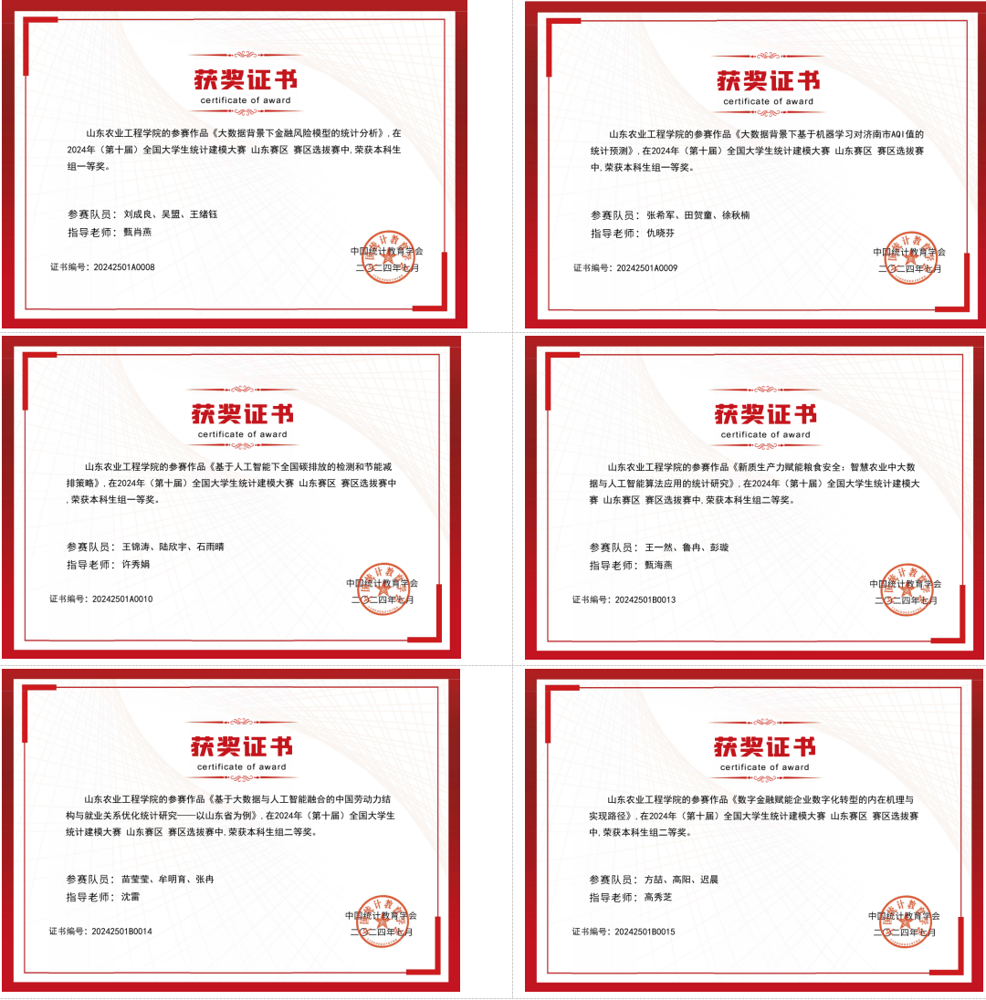 日前,第十届全国大学生统计建模大赛结果揭晓,必赢3支参赛队获山东省一等奖、3支队伍获山东省二等奖、14支队伍获山东省三等奖。