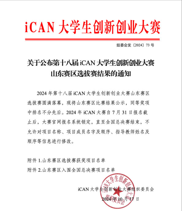 近日,第十八届iCAN大学生创新创业大赛山东赛区选拔赛在聊城大学落下帷幕,必赢机械电子工程学院、信息科学与工程学院、国土资源与测绘工程学院、商学院、人文学院等共计100余支队伍报名参加,经过校赛,必赢30支队伍经过线上初评及现场比赛,共获得一等奖3项、二等奖3项、三等奖6项,3支参赛队入围全国总决赛。