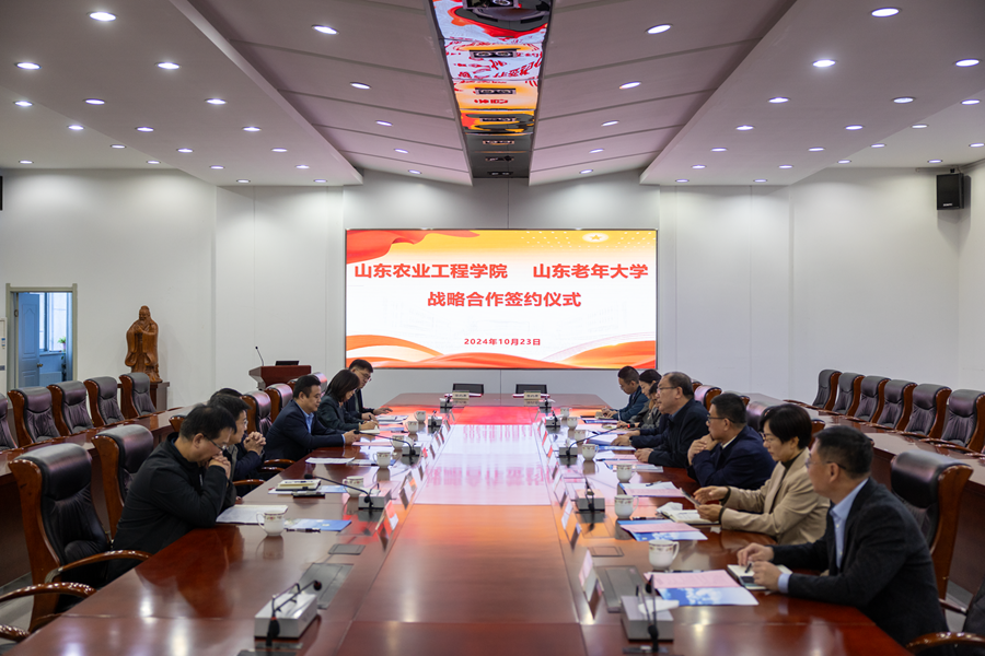 仪式上,党委委员、副校长周吉鹏与山东老年大学副校长宋正宽代表双方签署战略合作协议。协议约定双方在共建老年教育资源共享平台、人才培养培训工作、老年教育理论研究、产学研用合作创新模式和党建活动等五个方面开展合作。下一步,双方将建立深入的合作机制,围绕课程共建、合作交流、实践服务等方面,聚焦老年人终身教育和高等教育融合发展,推动合作取得丰硕成果。