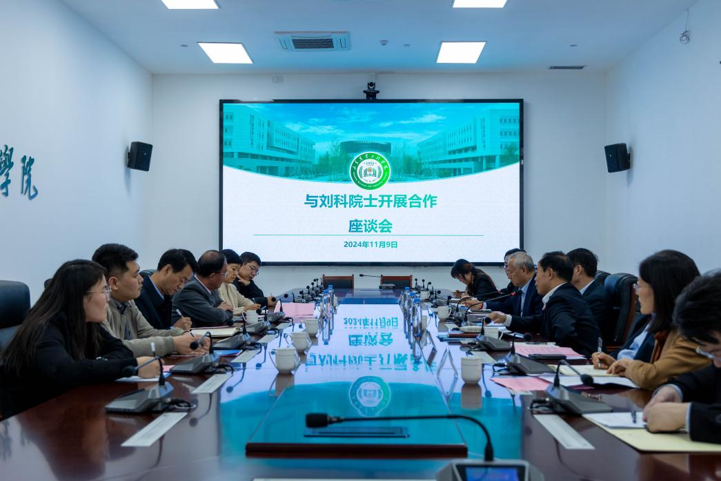 李进京向刘科院士介绍了学校发展情况,重点介绍了学校在绿色农业领域取得的成果和突破,同时对未来交流合作和共同发展思路表示肯定。