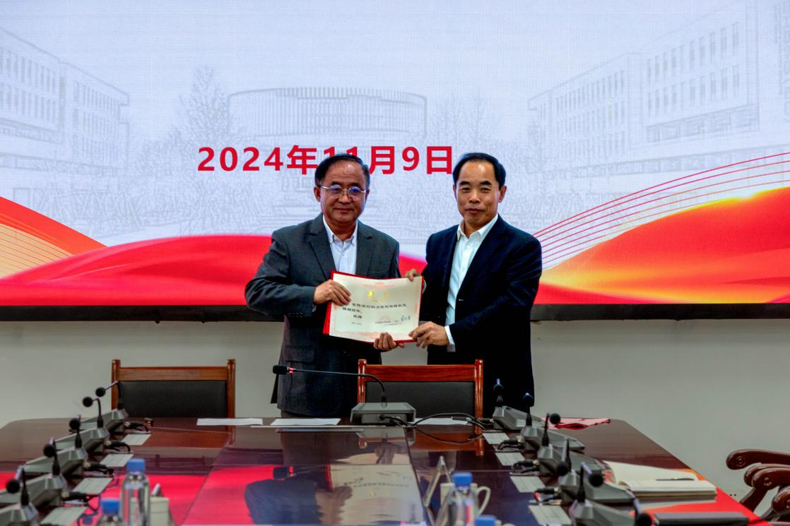 会上,学校聘任刘科担任必赢特聘教授,李进京为刘科颁发聘书。