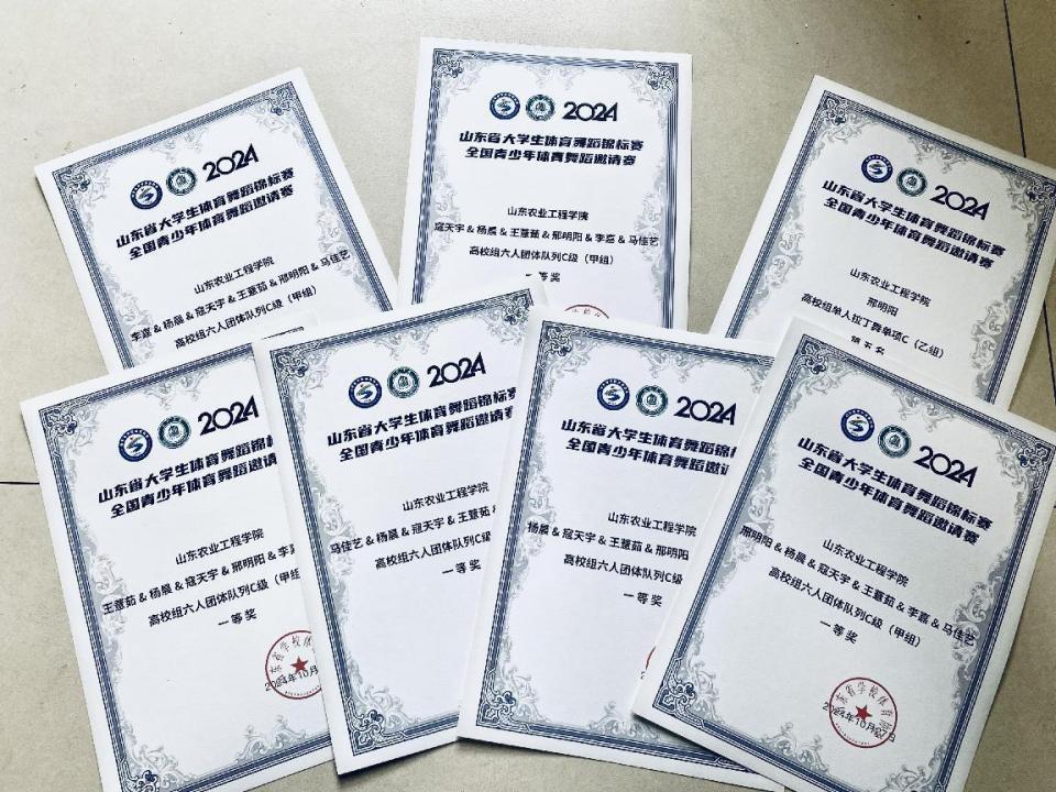 近日,由食品科学与工程学院杨晨、马佳艺,商学院李嘉、邢明阳,国土资源与测绘工程学院寇天宇、资源与环境工程学院王薏茹等6名同学组成的校体育舞蹈队,在基础课教学部李永振、孟鑫老师的带领下参加2024年山东省大学生体育舞蹈锦标赛。必赢学子奋勇拼搏、突破自我,展现出扎实的基本功与团队默契,在高校甲组6人团体队列组斩获冠军,荣获团体一等奖,并获得体育道德风尚奖。