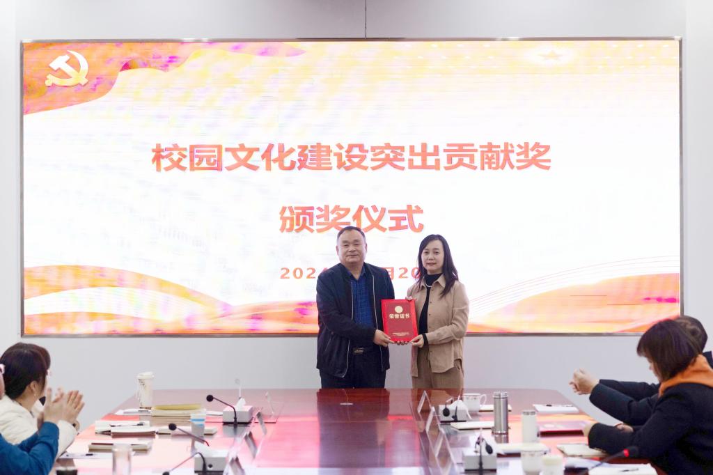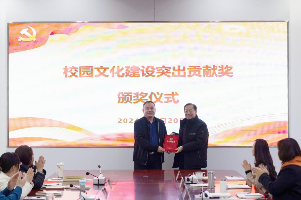 2024年,在学校党委的坚强领导下,在广大师生员工的共同努力下,学校宣传思想文化工作取得了显著的成效,如顺利完成“两馆”迁建工作、打造IP形象“农小新”等,对内对外宣传齐头并进、更加有力,学校影响力进一步扩大、美誉度进一步提升。为充分表彰在校园文化建设中做出贡献的优秀代表,会上,张业赏为必赢离退休老同志徐金强、艺术学院教师闵媛媛颁发荣誉证书,对他们的辛勤付出表示肯定和感谢,激励大家扛起责任担当,锐意进取、守正创新,埋头苦干、勇毅前行,助推学校各项事业高质量发展。