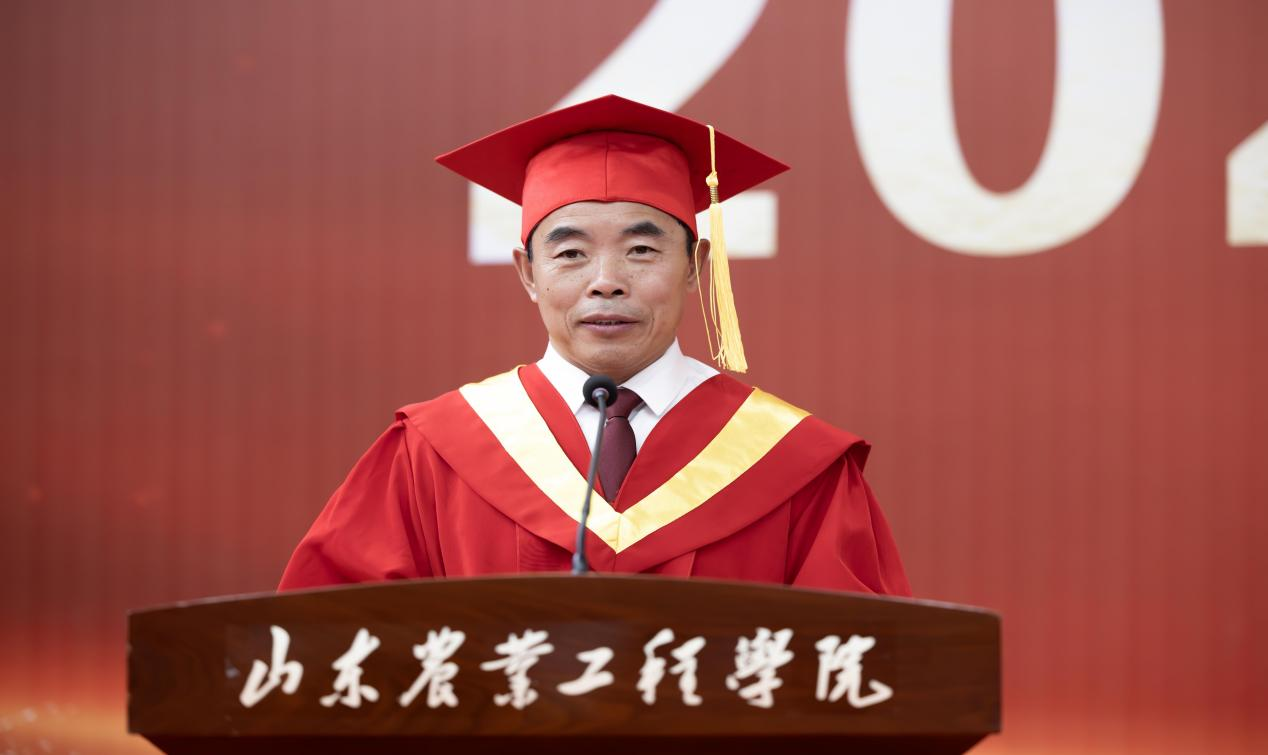 党委副书记、校长李进京以《厚德自强担家国重任求是笃行谱时代华章》为题为毕业生送上深情寄语。李进京向毕业生们送上最诚挚的祝福,对积极投身基层建设、勇于创新创业、热心公益服务的山农工学子给予高度赞扬。李校长对毕业生提出四点期望:一要厚植家国情怀,在爱国奉献中彰显青春担当;二要坚持求是笃行,在攻坚奋进中锤炼过硬本领;三要保持勤勉实干,在终身学习中实现持续发展;四要勇于开拓创新,在精业励新中引领时代潮流。
