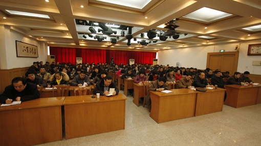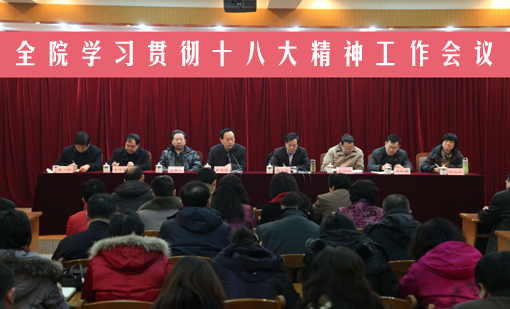 2013年1月28日上午,我院在多功能厅召开学习贯彻十八大精神工作会议。院党委全体成员出席会议,全体处级干部、高级职称专业技术人员以及机关科级干部参加会议。院党委书记董忠堂主持会议并作了学习贯彻十八大精神辅导报告。党委副书记、院长李允祥对全院2012年工作进行了简要总结,对2013年工作作了重点部署,对当前工作提出了严格要求。