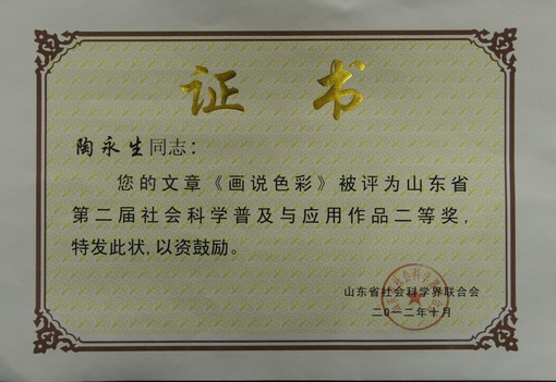 以上奖励是我院社会科学成果奖励领域的较大突破,据悉,山东省第二届社会科学普及与应用优秀作品评选工作,经公开申报、专家评审、奖励公示等环节。本次评选活动,由山东大学、山东师范大学、山东财经大学、省委党校、济南大学,有关省级学会和市社科联专家学者组成评委会,经过初评、终评两轮评审;本次评选共收到申报成果178项,其中,著作93项,文章85项,初评评出著作80项,文章70项;终评评出著作一等奖10项,二等奖15项,三等奖20项;文章一等奖4项,二等奖10项,三等奖15项。