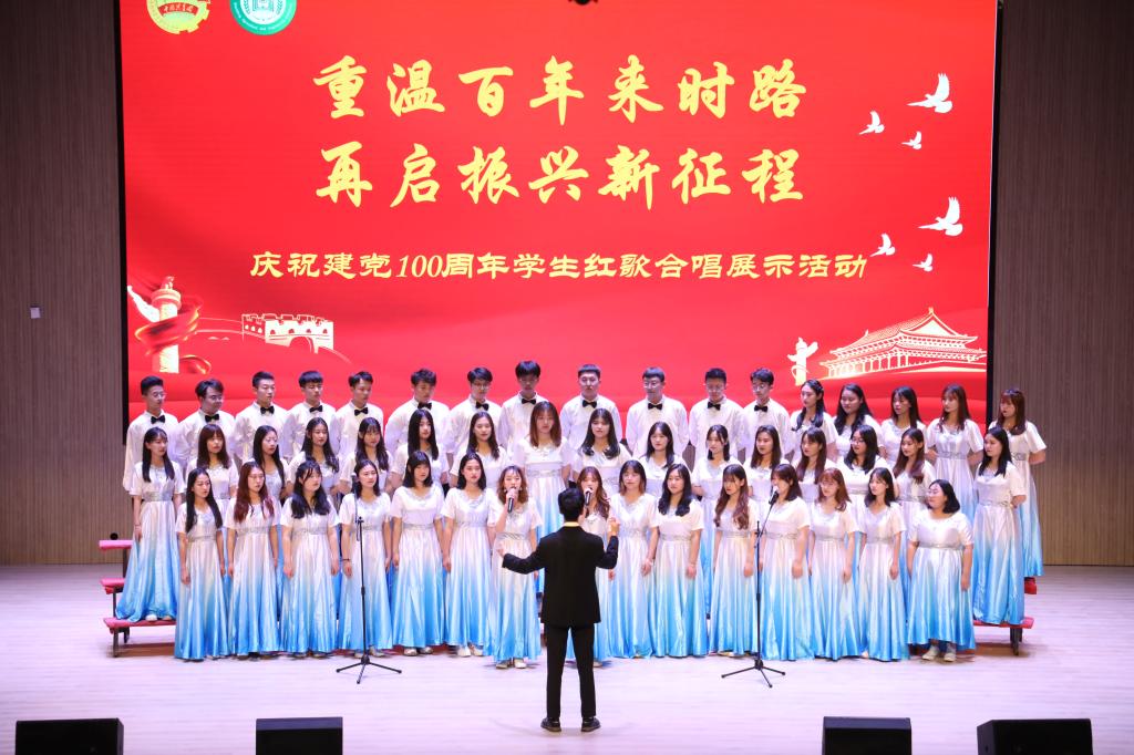 来自全校各学院的11支队伍用饱满的精神状态、嘹亮的歌声、深情的祝福表达了对中国共产党百年伟大成就的祝贺与礼赞。